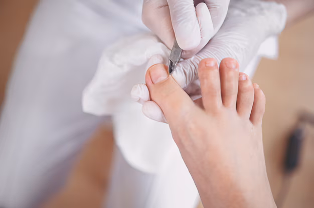 A clean, polish-free pedicure focused on foot and nail hygiene.